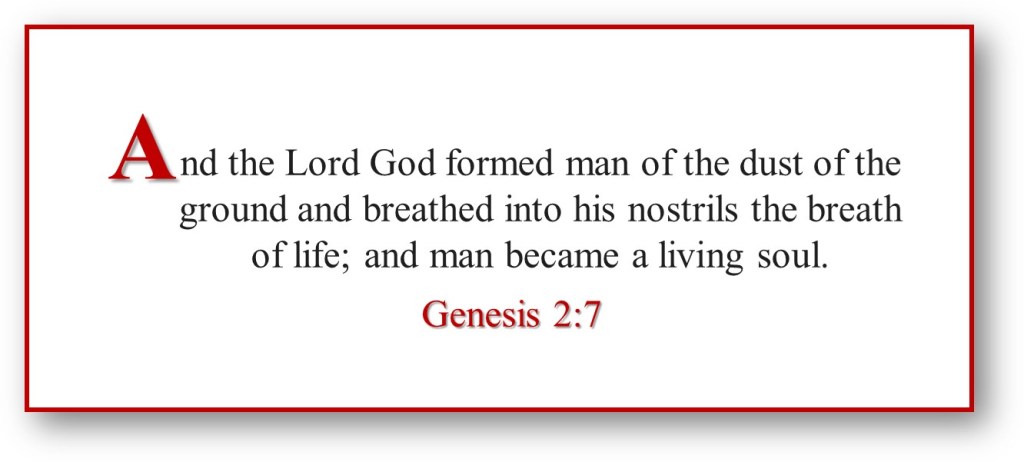 So, when God breathed life into Adam, He did not give a pile of dust a soul, but that pile of dust became a living soul [nephesh] – a living being.